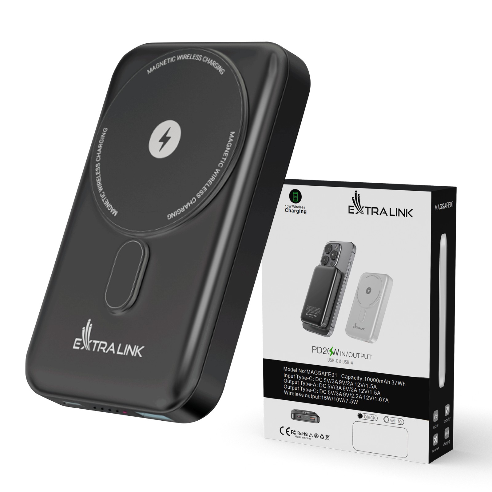 Extralink MagSafe 10000mAh is the solution for those who value independence and convenience. With a powerful battery, MagSafe technology and versatility, this powerbank will provide you with safe and fast charging in any situation. The lightweight and durable design means you can carry it with you at all times, and the strong magnets will keep your smartphone in place.