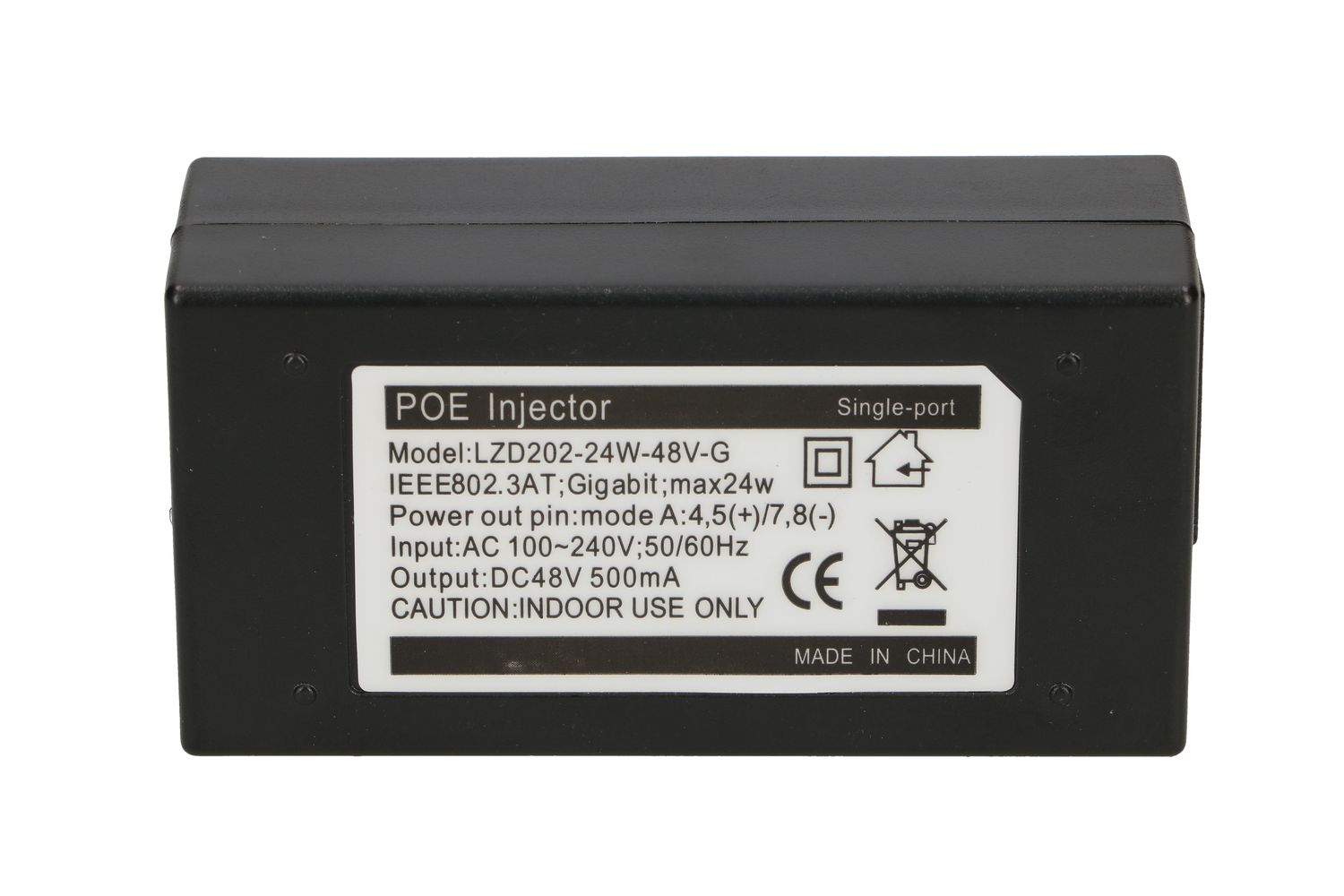 The Extralink PoE power adapter (power adapter) supplies power through selected strands of twisted-pair cable to network devices such as media converters, access points, cameras, etc. The 48V 0.5A PoE power adapter enables Gigabit Ethernet network data transmission while providing power over a single cable. This model allows transmission at Gigagbit Ethernet speeds, is a Passive PoE solution and is not compliant with the IEEE 8023af/at standard. Unlike power supplies with a 5.5/2.1mm jack connector, the presented device allows you to directly power Gigabit PoE devices without additional network accessories.