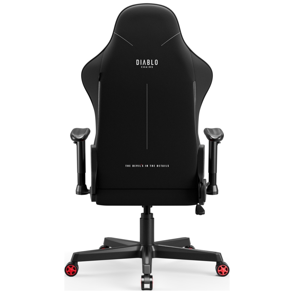 The upholstery made of durable, easy-to-clean eco-leather offers high resistance to abrasion and everyday use. The black-and-red color scheme with contrasting stitching and the Diablo Chairs logo gives the chair an aggressive, gaming-inspired look. The stable base and smoothly operating casters ensure safety and freedom of movement on various floor types.