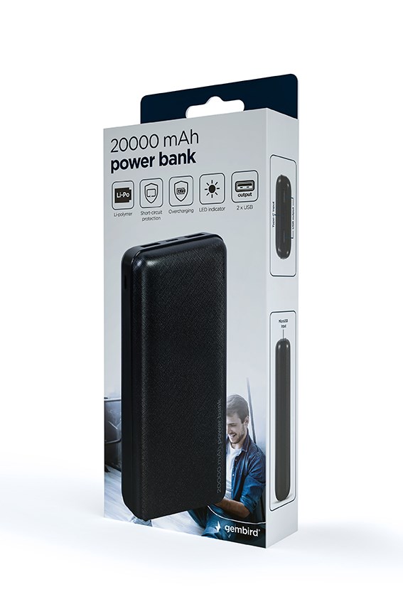 Gembird PB20-02 power bank Lithium Polymer (LiPo) 20000 mAh Black