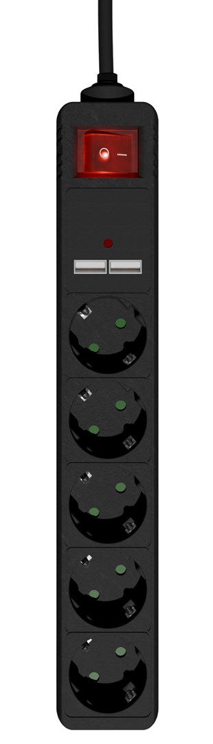 Gembird SPG5-U2-5-02 Power strip with USB charger 5 sockets 1.5 m 2x USB black