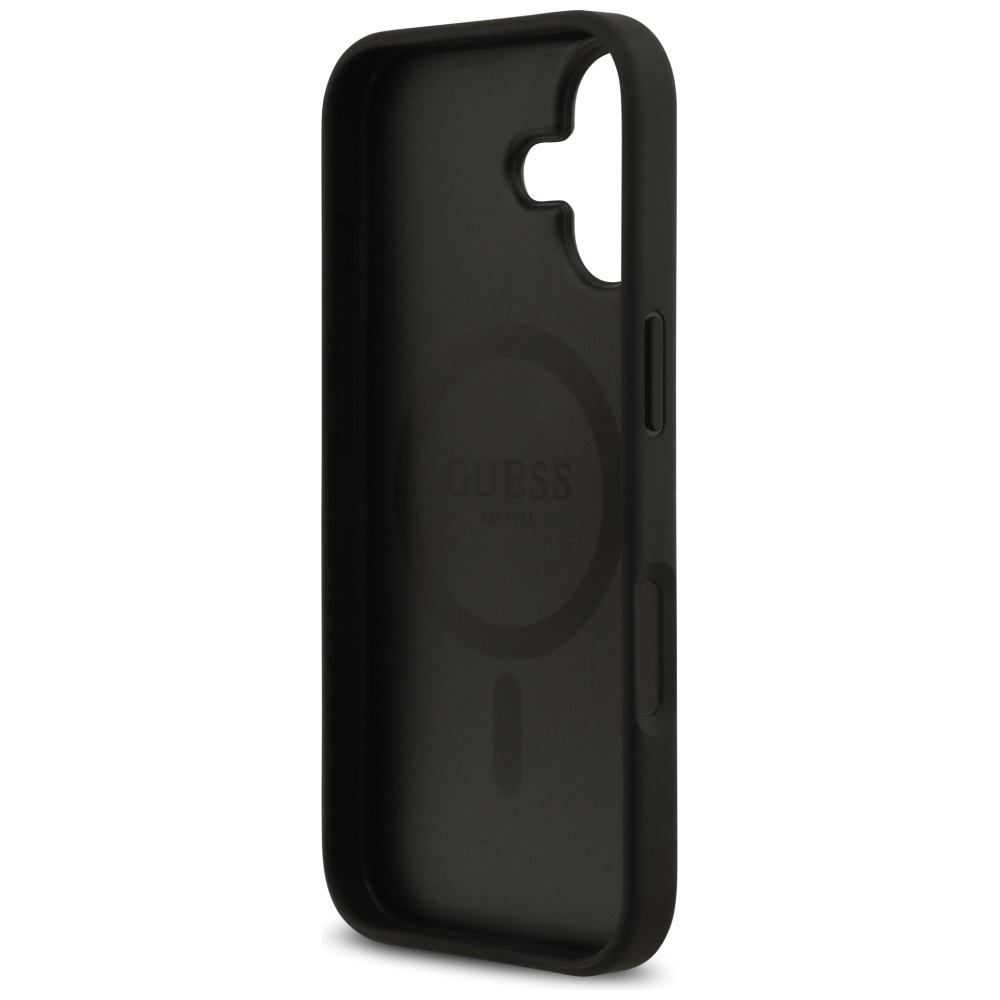 Guess Grained Flowers Classic Logo MagSafe case for iPhone 17 black