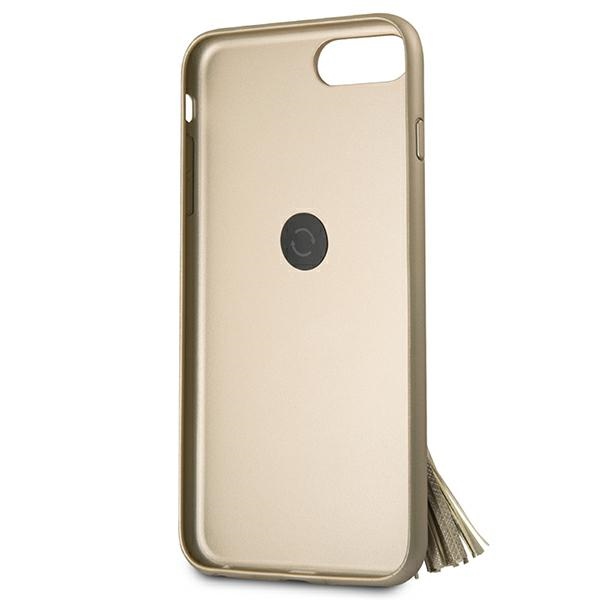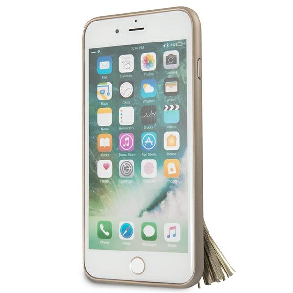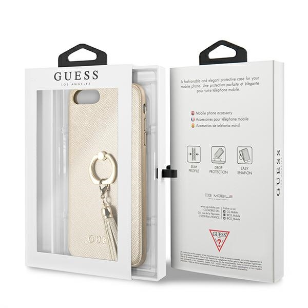 Collection Guess Saffiano with ring stand. It is characterized by an elegant, checked Saffiano texture imitating leather, decorated with a practical ring-shaped handle on the back of the housing, which allows you to pass your finger through it and use your device in a comfortable and safe way. Saffiano will add sophisticated Guess aesthetics to your iPhone and provide some protection. Collection: Saffiano Ring stand Type: Hardcase Material: Synthetic leather Beige colour Compatibility: iPhone 7/8 Plus Product manufactured under the Guess license