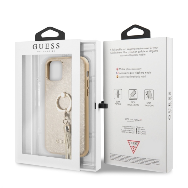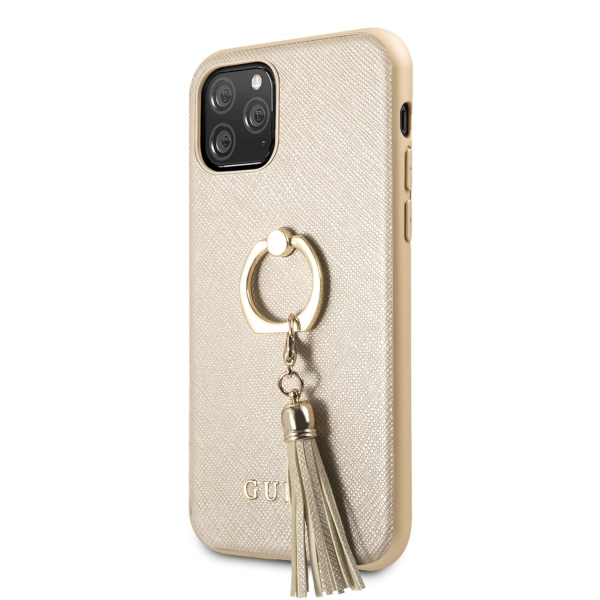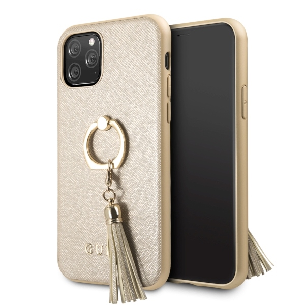 Guess GUHCN58RSSABE iPhone 11 Pro beige hard case Saffiano with ring stand