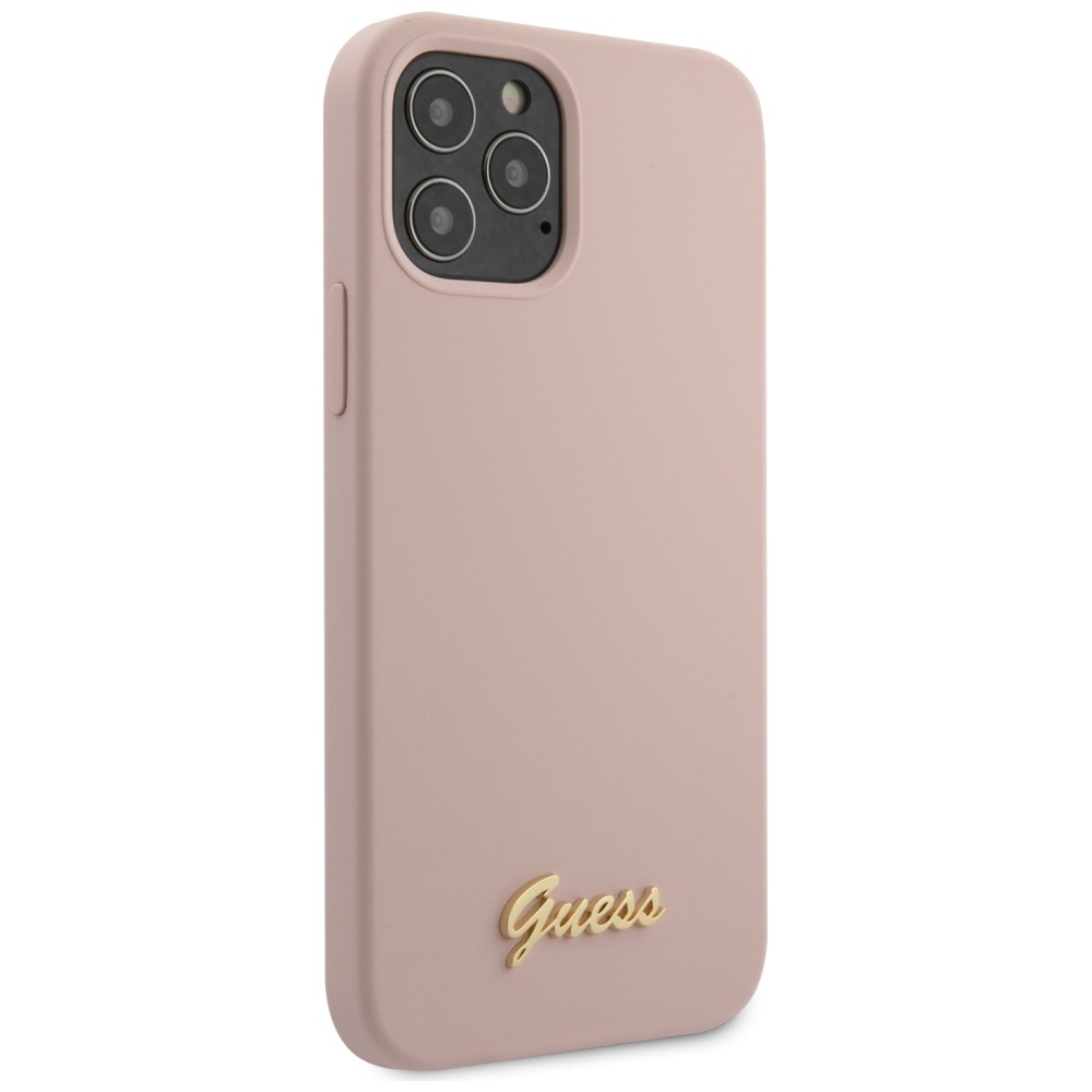 Guess GUHCP12LLSLMGLP iPhone 12 Pro Max 6,7″ light pink hardcase Silicone Script Gold Log