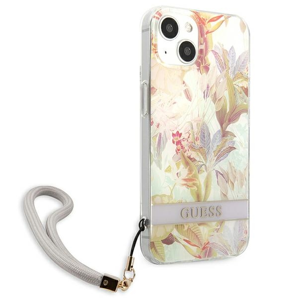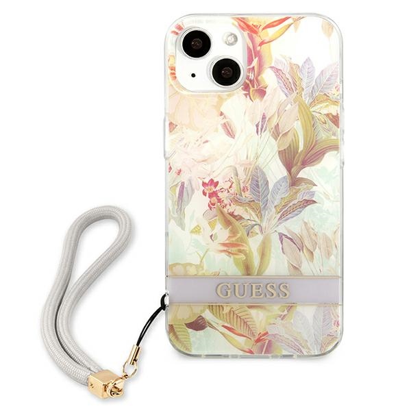 Guess GUHCP13MHFLSU iPhone 13 / 14 / 15 6,1″ purple hardcase Flower Strap