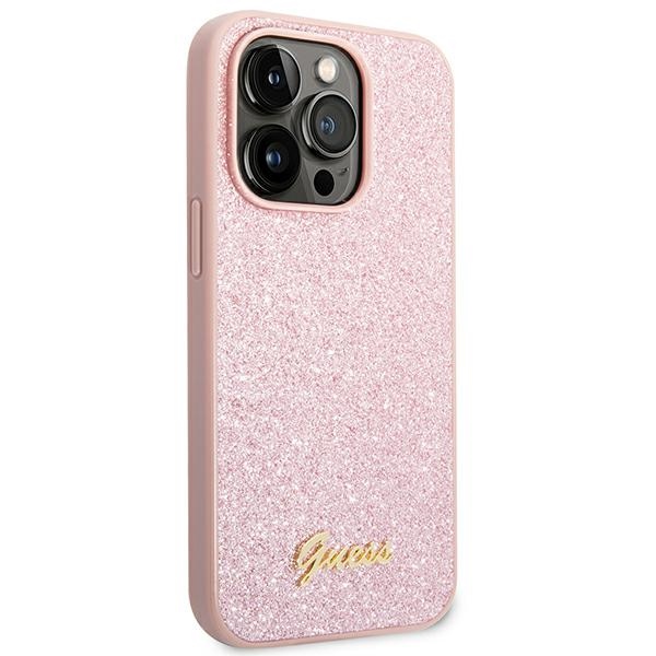 Guess GUHCP14LHGGSHP iPhone 14 Pro 6,1″ pink hard case Glitter Script