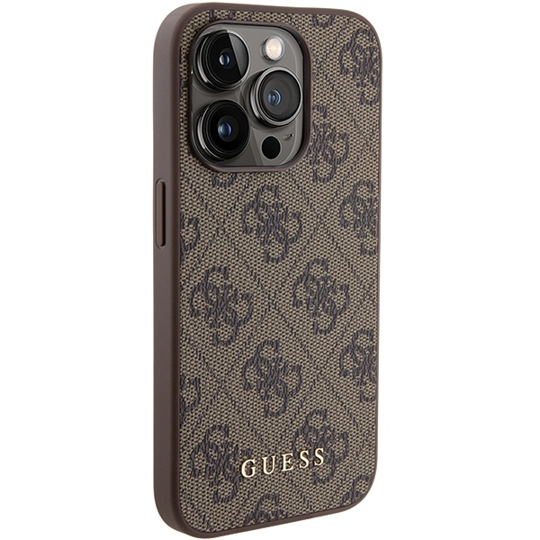 Guess GUHCP15LG4GFBR iPhone 15 Pro 6.1″ brown hard case 4G Metal Gold Logo
