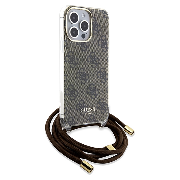 Guess GUHCP15LHC4SEW iPhone 15 Pro 6.1″ brown hardcase Crossbody Cord 4G Print