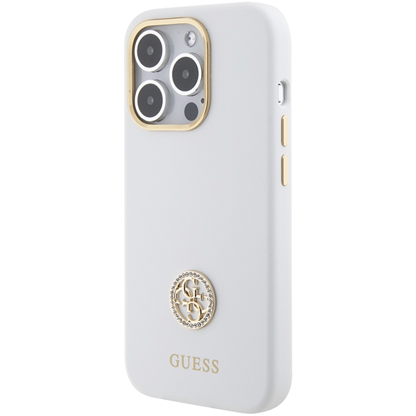 Guess GUHCP15LM4DGPH iPhone 15 Pro 6.1″ white hardcase Silicone Logo Strass 4G