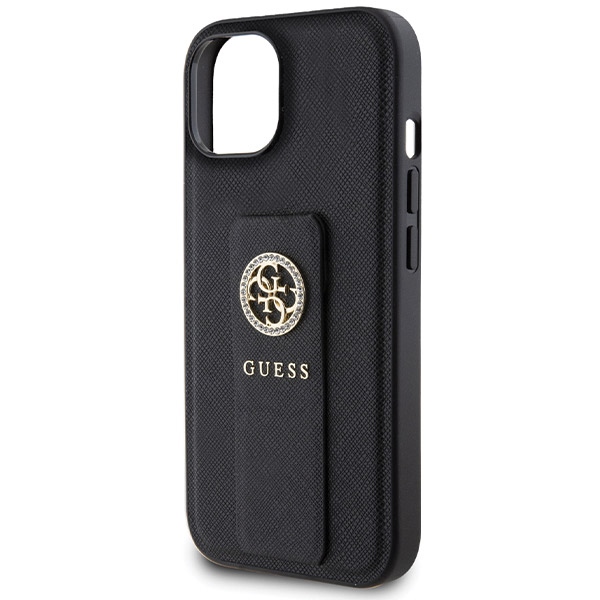 Guess GUHCP15SPGSSADK iPhone 15 / 14 / 13 6.1″ black hardcase Grip Stand 4G Saffiano Strass