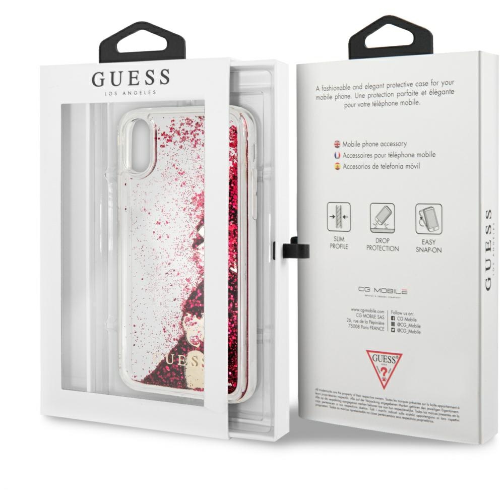Guess GUHCPXGLHFLRA iPhone X/Xs raspberry hard case Glitter Hearts