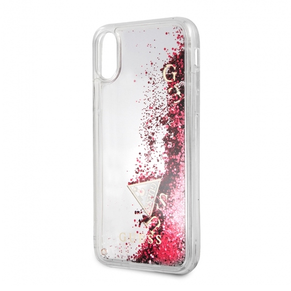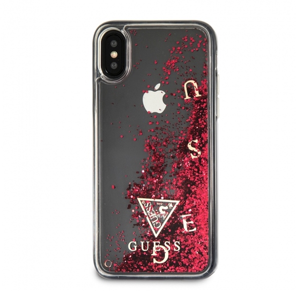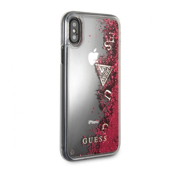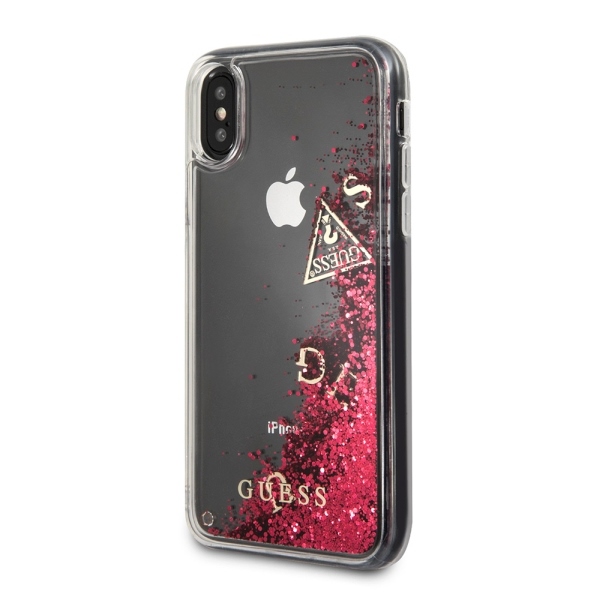 Guess GUHCPXGLUFLRA iPhone X Raspberry hard case Glitter Liquid