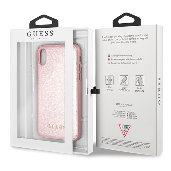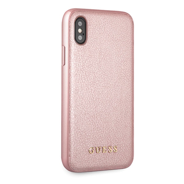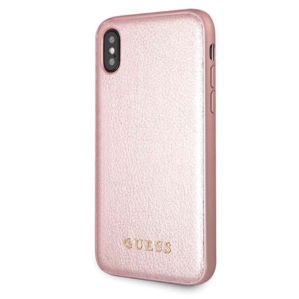Guess Iridescent series. The perfect combination of modern design and high-quality materials makes this collection the perfect choice for your device. A product of a reputable company of exceptionally high quality made of a leather composite finished with the Guess logo. Collection: Iridescent Type: Hardcase Material: PU leather Color: Rose Gold Compatibility: iPhone X Product manufactured under the Guess license.