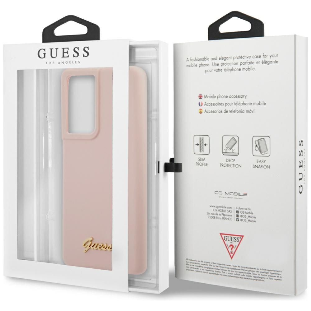 Guess GUHCS21LLSLMGLP S21 Ultra G998 pink hardcase Silicone Script Metal Logo