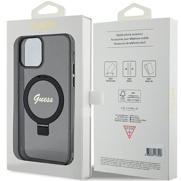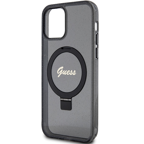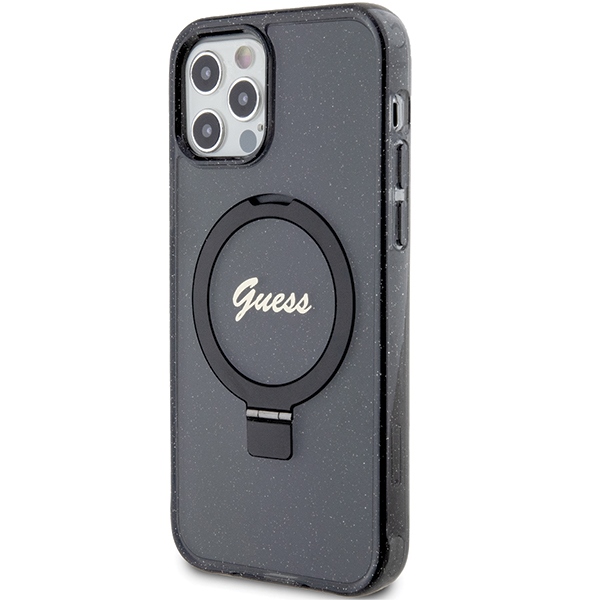 Guess GUHMP12MHRSGSK iPhone 12/12 Pro 6.1″ black hardcase Ring Stand Script Glitter MagSafe