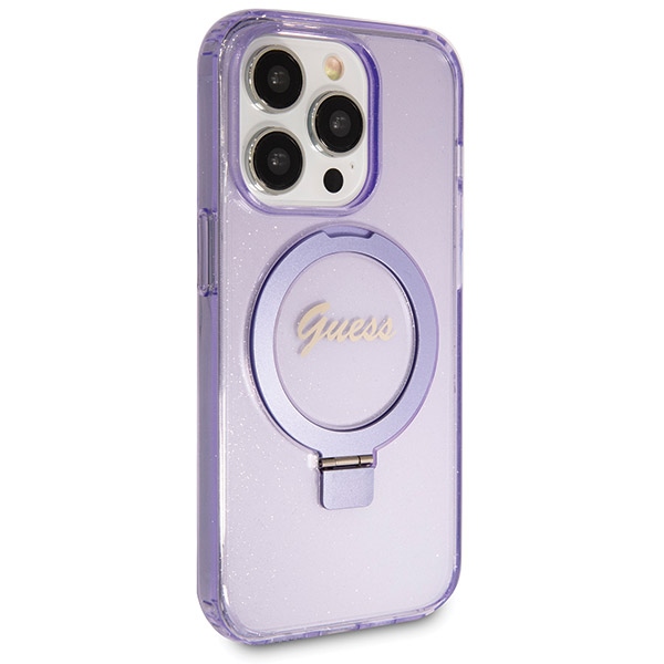 Guess GUHMP13XHRSGSU iPhone 13 Pro Max 6.1″purple hardcase Ring Stand Script Glitter MagSa