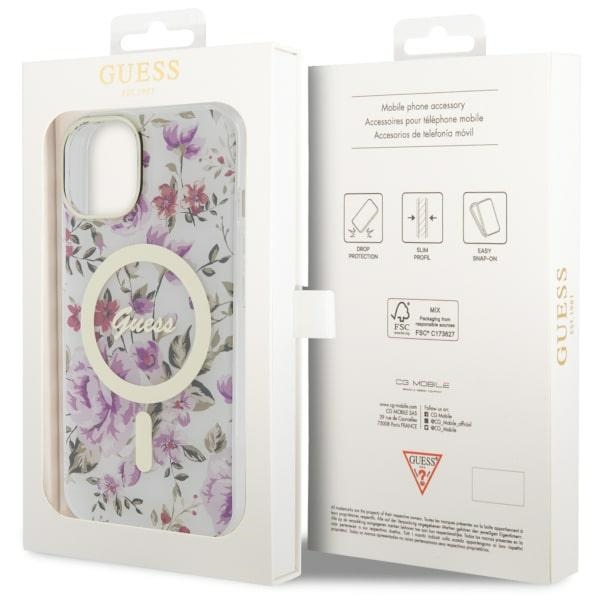 Guess GUHMP14MHCFWST iPhone 14 Plus / 15 Plus 6.7″ transparent hardcase Flower MagSafe