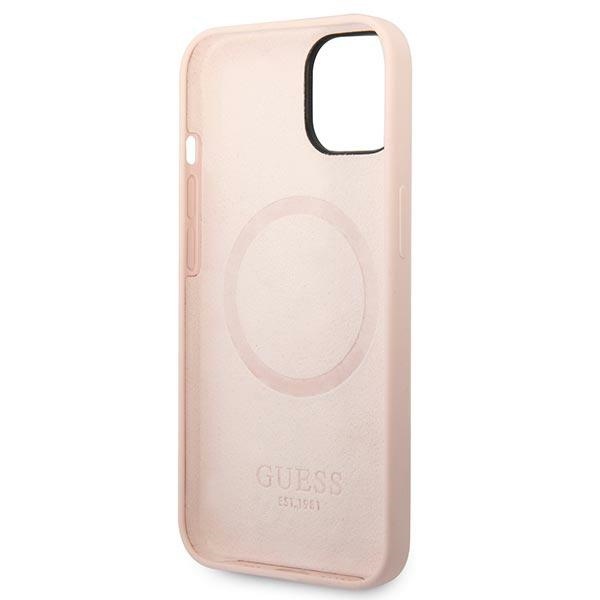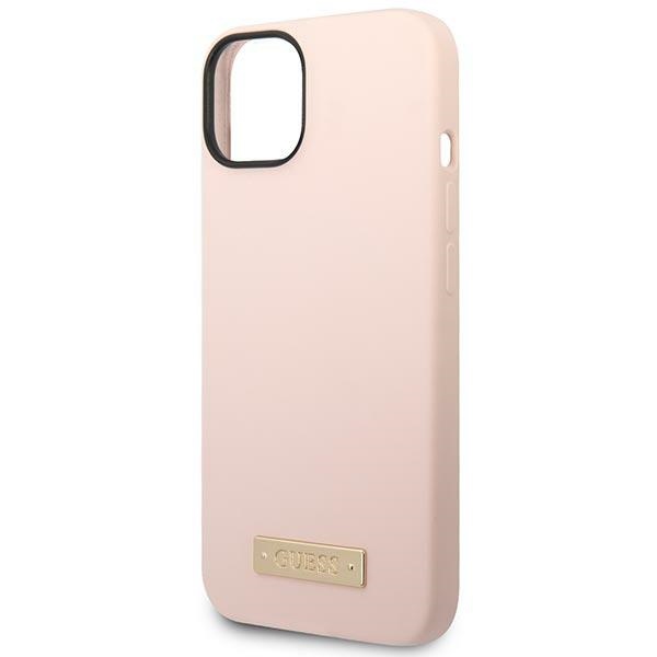 Guess GUHMP14SSBPLP iPhone 14 / 15 / 13 6.1″ pink hard case Silicone Logo Plate MagSafe