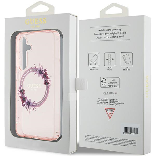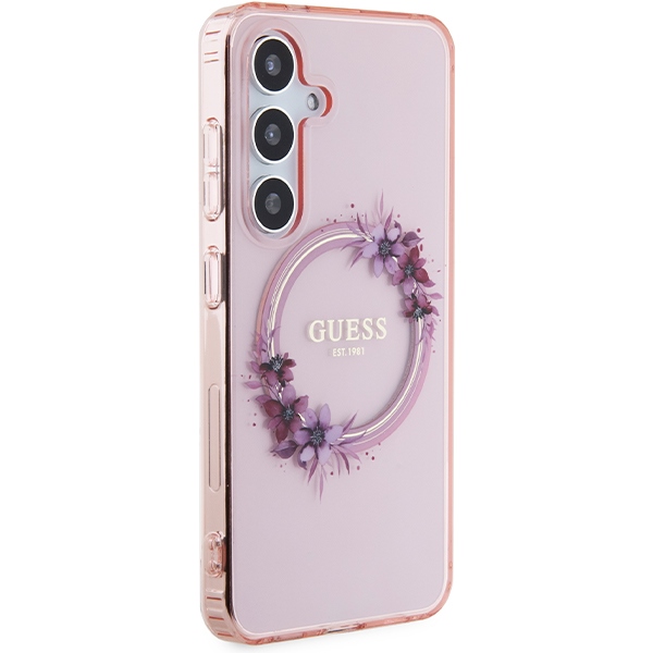 Guess GUHMS24SHFWFCP S24 S921 pink hardcase IML Flowers Wreath MagSafe
