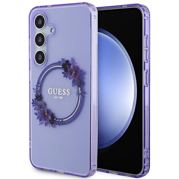 Guess GUHMS24SHFWFCU S24 S921 purple hardcase IML Flowers Wreath MagSafe