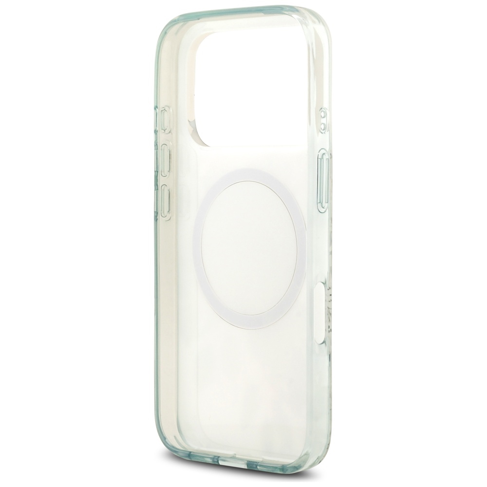 This elegant collection will impress even the most demanding and refined tastes. The outer layer of the case enchants with a delicate floral pattern in shades that harmoniously match the case color, creating a cohesive whole. At the center, there is a golden MagSafe ring, perfectly highlighting the GUESS logo placed on a pink-toned background. This unique design not only adds elegance but also ensures functionality and protection, making the case a stylish accessory for demanding users.