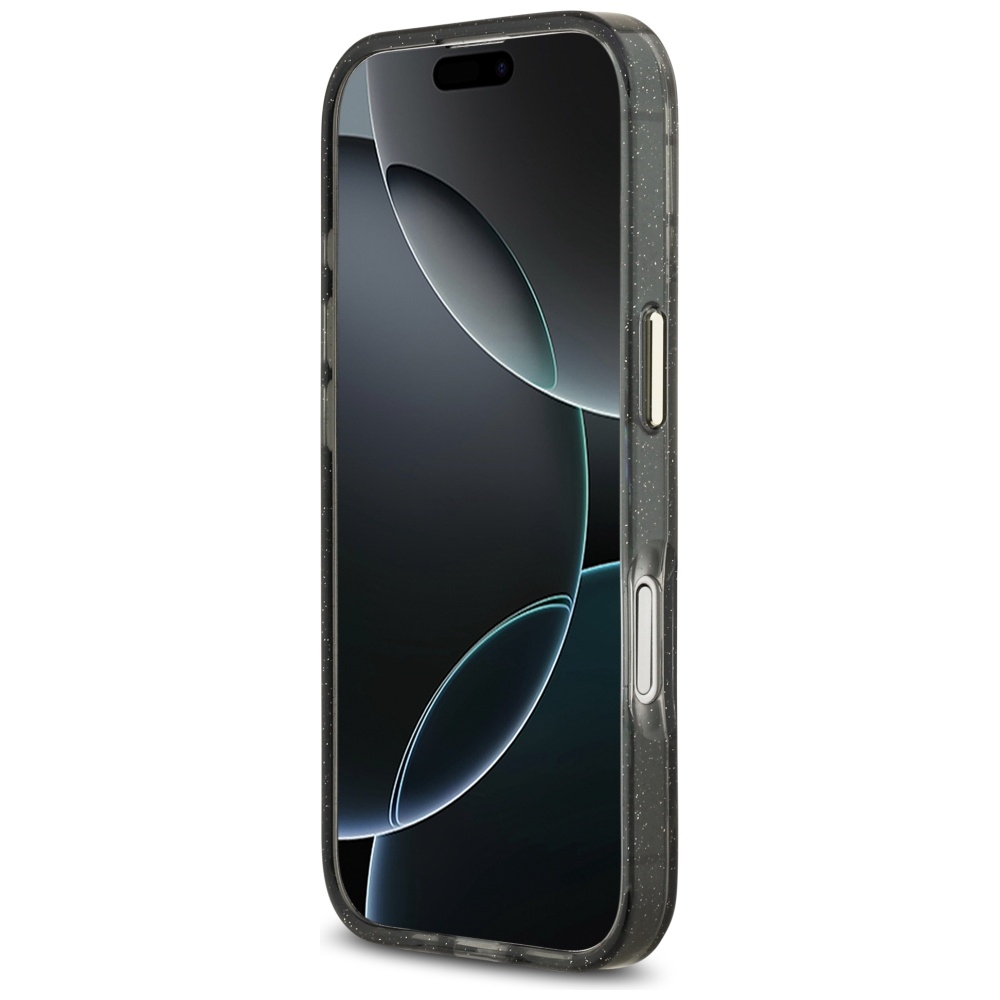 Guess IML Glitter Flowers Triangle MagSafe case for iPhone 17 black