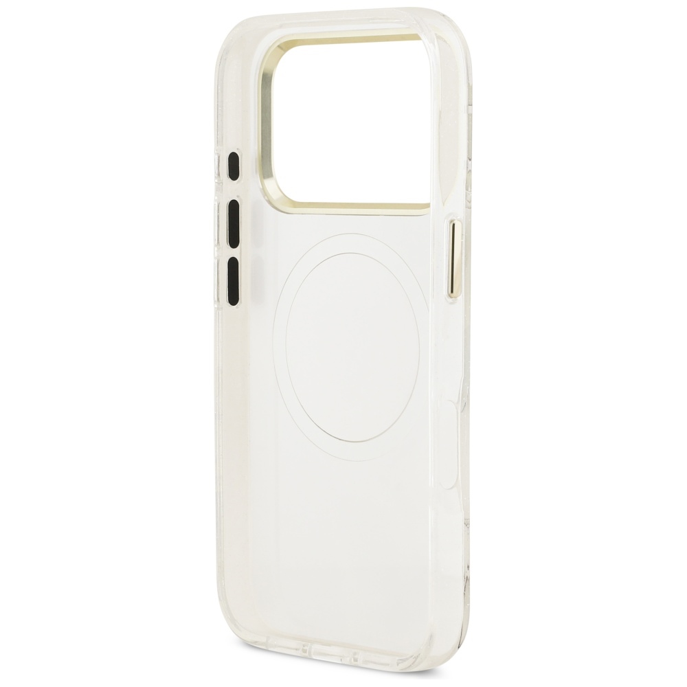 Guess IML Glitter Flowers Triangle MagSafe Case for iPhone 17 Pro White