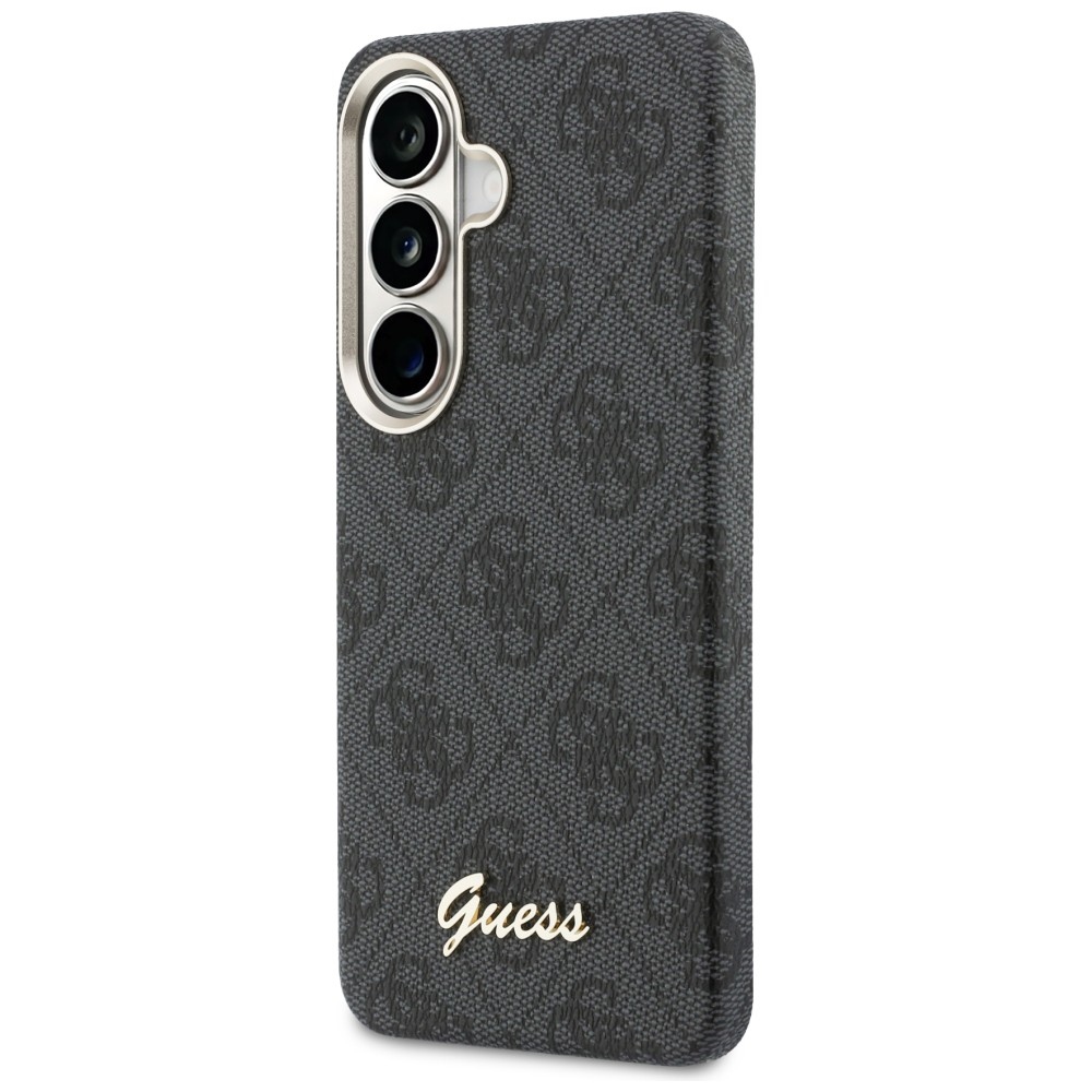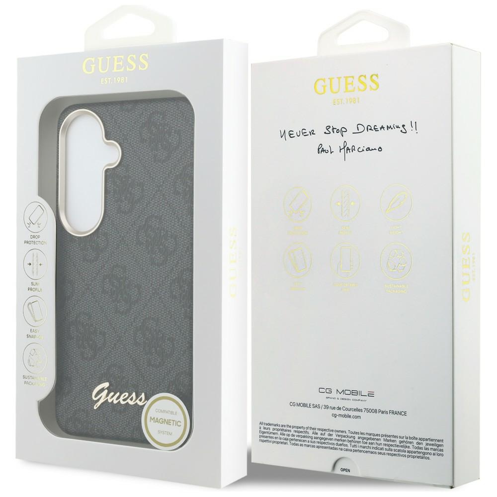 Guess PU 4G Script Metal Logo Magnetic Zadní Kryt pro Samsung Galaxy S26 Black