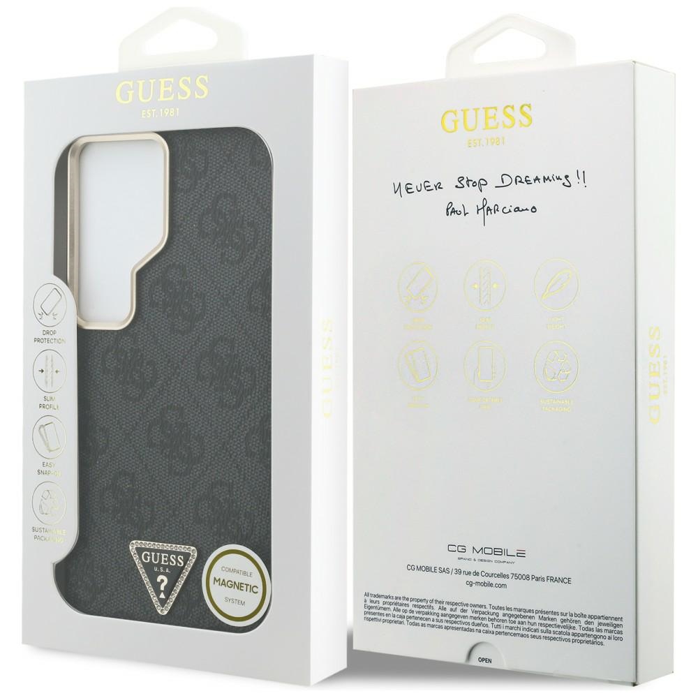 Guess PU Leather 4G Strass Triangle Logo Gold Frame Magnetic Zadní Kryt pro Samsung Galaxy S26 Ultra Black