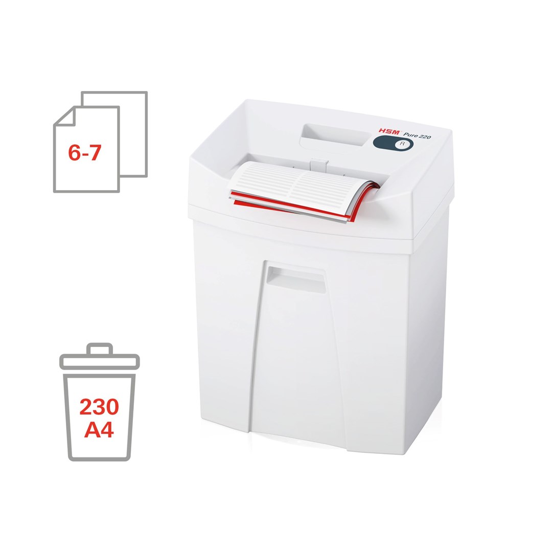HSM Pure 220 paper shredder Particle-cut shredding 22.5 cm White