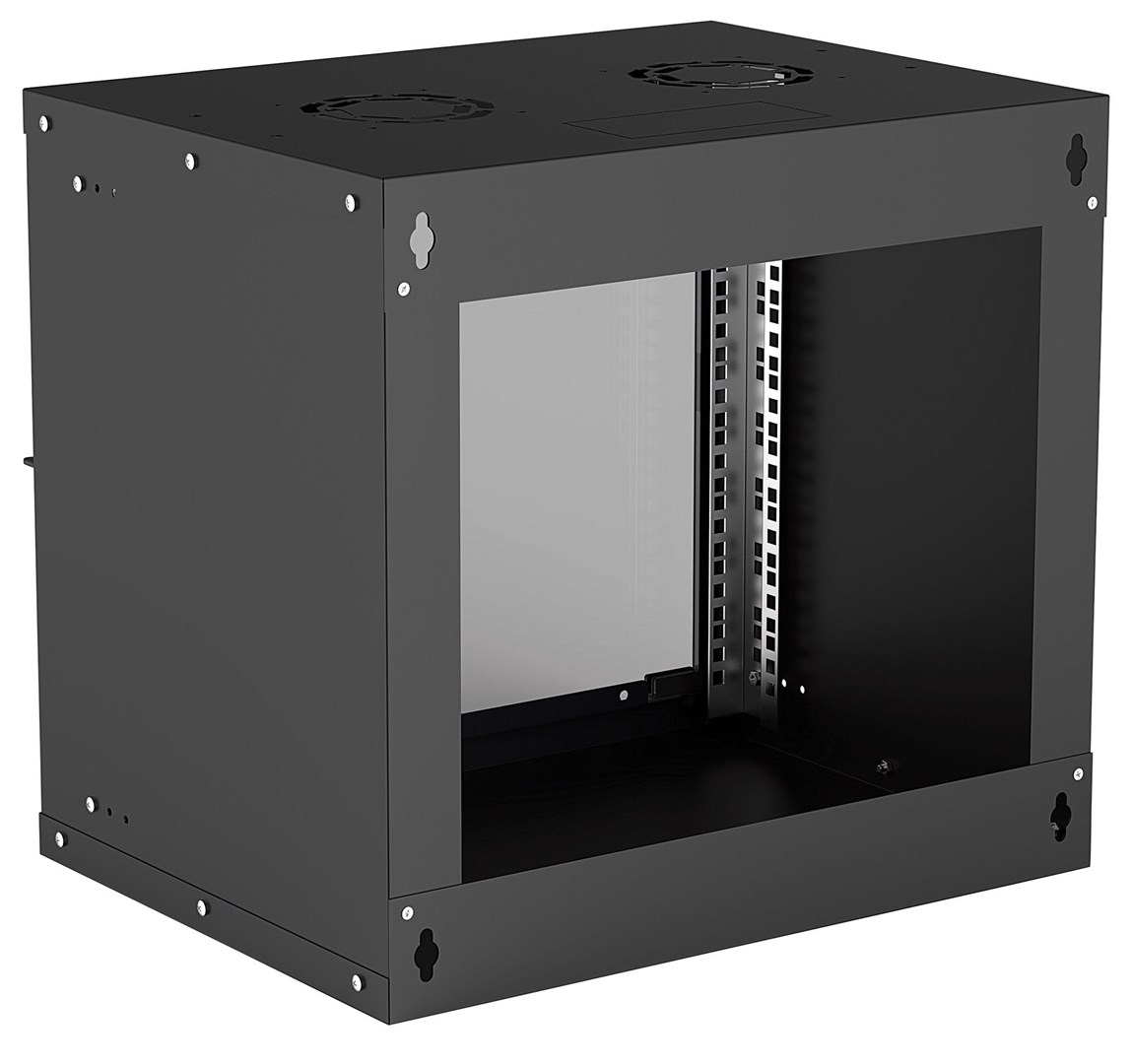 Intellinet 19 Network Cabinet – Wall Mount (Basic) 9U 400mm Deep Black Flatpack Max 50kg Usable Depth 340mm Glass Door Rack Parts for wall installation (eg screws and rawl plugs) not included
