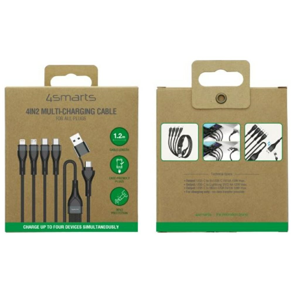 Kabel USB-C/USB-A 4smarts 4w1 1.2m czarny