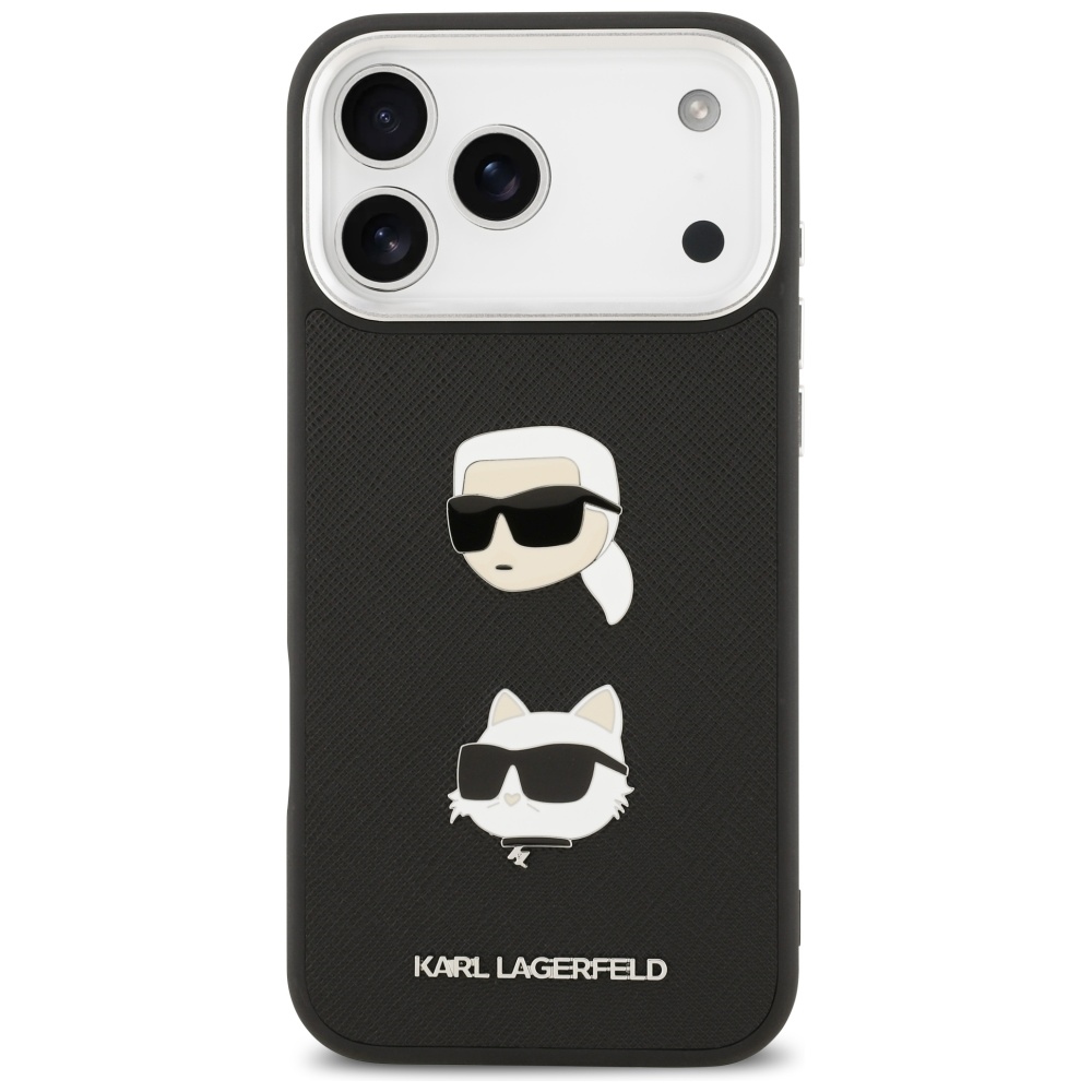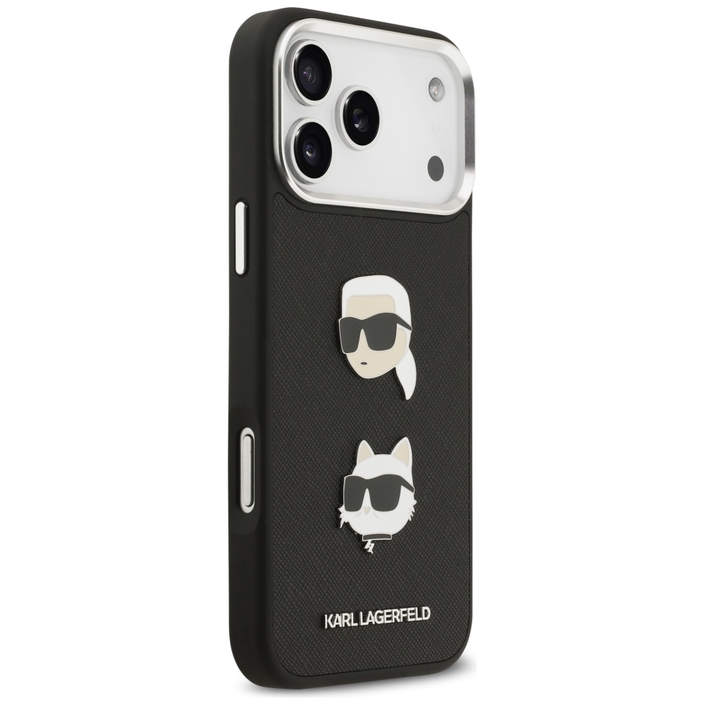Karl Lagerfeld FW Grained Karl & Choupette Heads Pins & Logo Case for iPhone 17 Pro Max Black