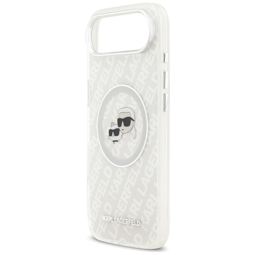 Karl Lagerfeld IML Glitter Karl & Choupette Heads Logo MagSafe Case for iPhone Air Gray