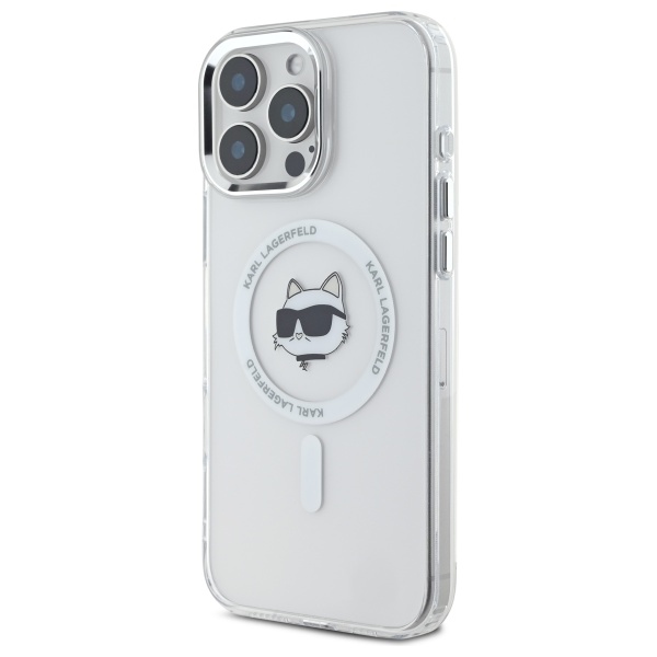 Karl Lagerfeld KLHMP16LHLSCHH iPhone 16 Pro 6.3″ white hardcase IML Metal Choupette Head MagSaf