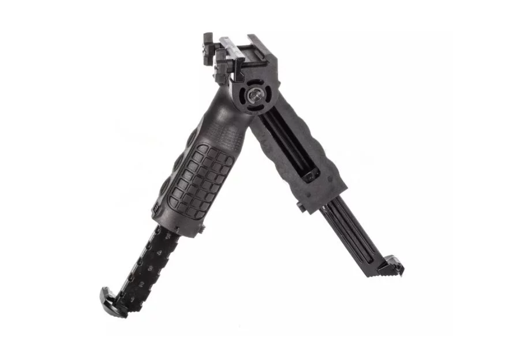 2 magazines, a single-shot insert, a quick-release fastener, a front grip with a bipod and a polymer case |