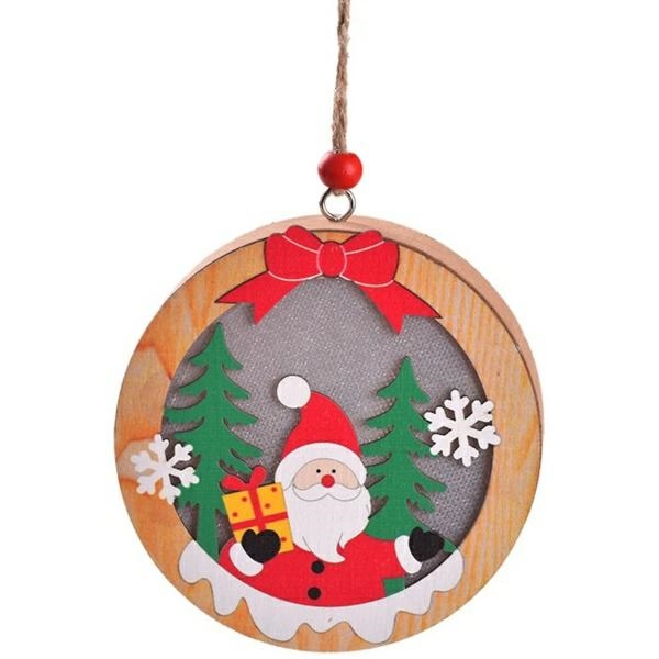 Lampka Świąteczna Drewniana Mikołaj – Okrągła