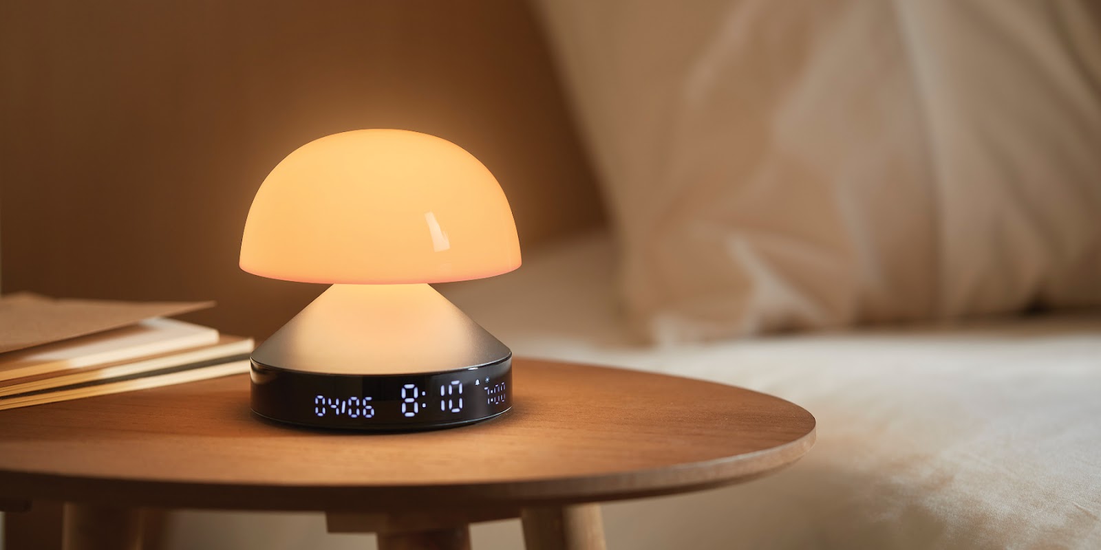 This lamp is not only practical but also beautifully designed. Its compact shape, aluminum base, and high-quality display add elegance and fit perfectly on your bedside table. The operation is intuitive – simply press the top part of the lamp to turn the light on or off, select one of the 9 LED colors, adjust the brightness, or stop the current alarm.