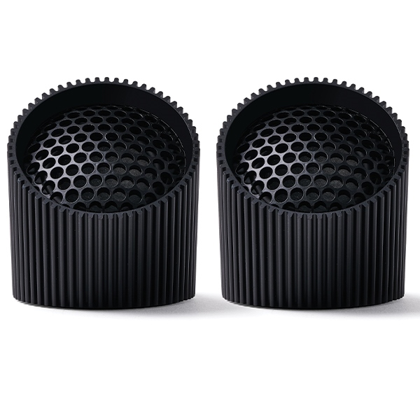 Made of aluminum, the Ray speaker combines modern aesthetics with durability. Its sleek, cylindrical design adds a touch of elegance to any audio setup. Available in various colors to match your interior, this speaker set is also your outdoor companion thanks to its IPX4 water resistance.