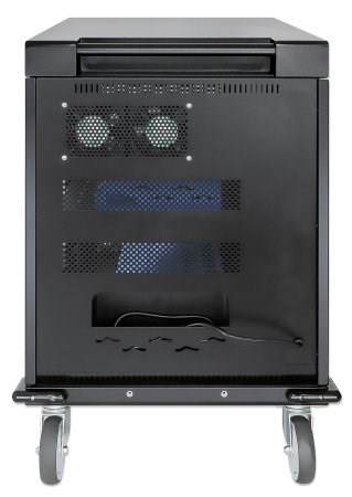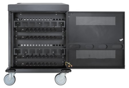Manhattan Laptop Charging Cart/Trolley via AC Adapter (EU) 32-bay Install device’s AC Adapter (power cables) into unit Suitable for ALL laptops (to 15.6 ) iPads MacBooks Chromebooks other USB-C devices Bays 380x30x280mm Cabinet Lockable