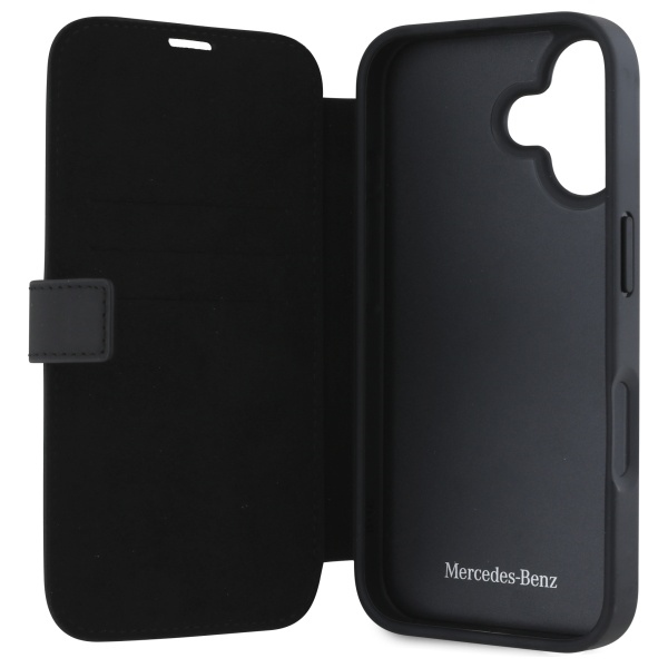 Mercedes MEBKP16S23RBGVK iPhone 16 6.1″ black bookcase Leather Wood Imitation