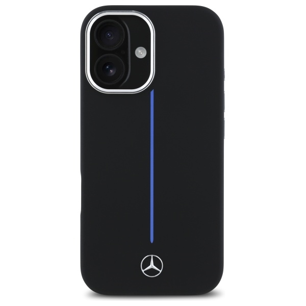 Mercedes MEHMP16S23SUMBK iPhone 16 6.1″ black hardcase Silicone Blue Stripe MagSafe
