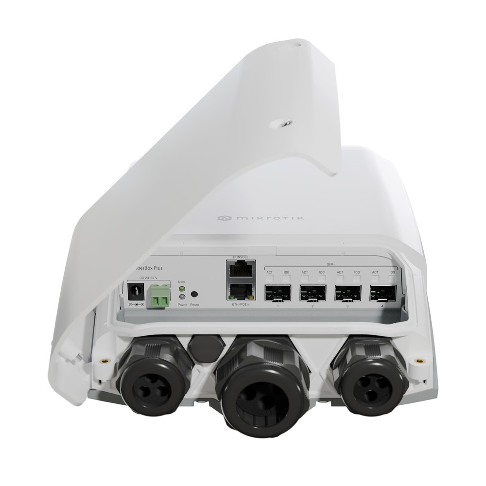 The FiberBox Plus is a huge upgrade from previous FiberBox devices. This version is equipped with a modern ARM processor, more RAM and four 10-gigabit SFP ports . Fast and reliable connectivity at an affordable price. No Ethernet distance limitations. A Gigabit Ethernet port is also available for management or PoE-in power. A 2-pin terminal and standard DC jack are included, so you have 3 different power options to choose from. The FiberBox Plus supports a wide input voltage range of 24-57V. And it is extremely efficient: the maximum power consumption (without attachments) is only 7 W.