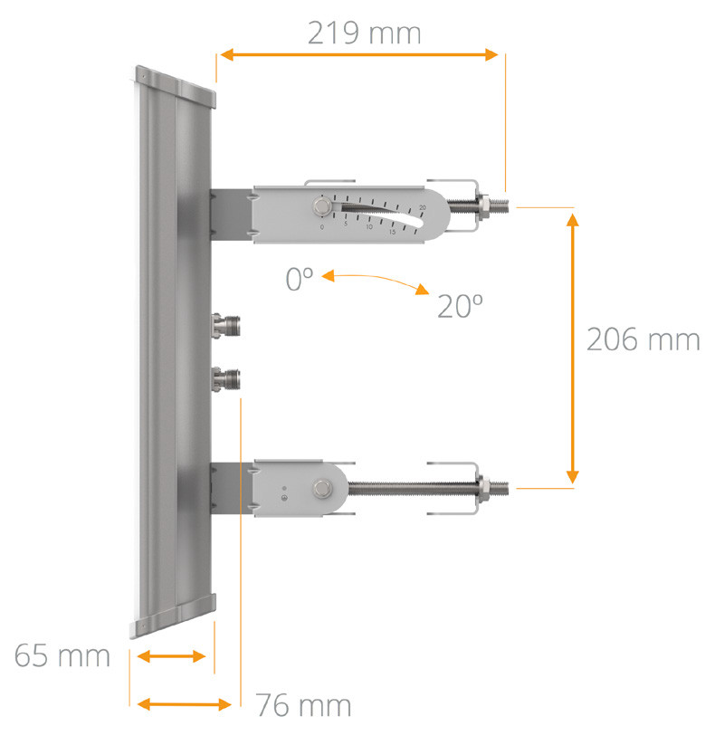 Mimosa N5-45X2 | Sector antenna | 19dBi, 45st, 4,9-6,4 GHz, 2x N-female