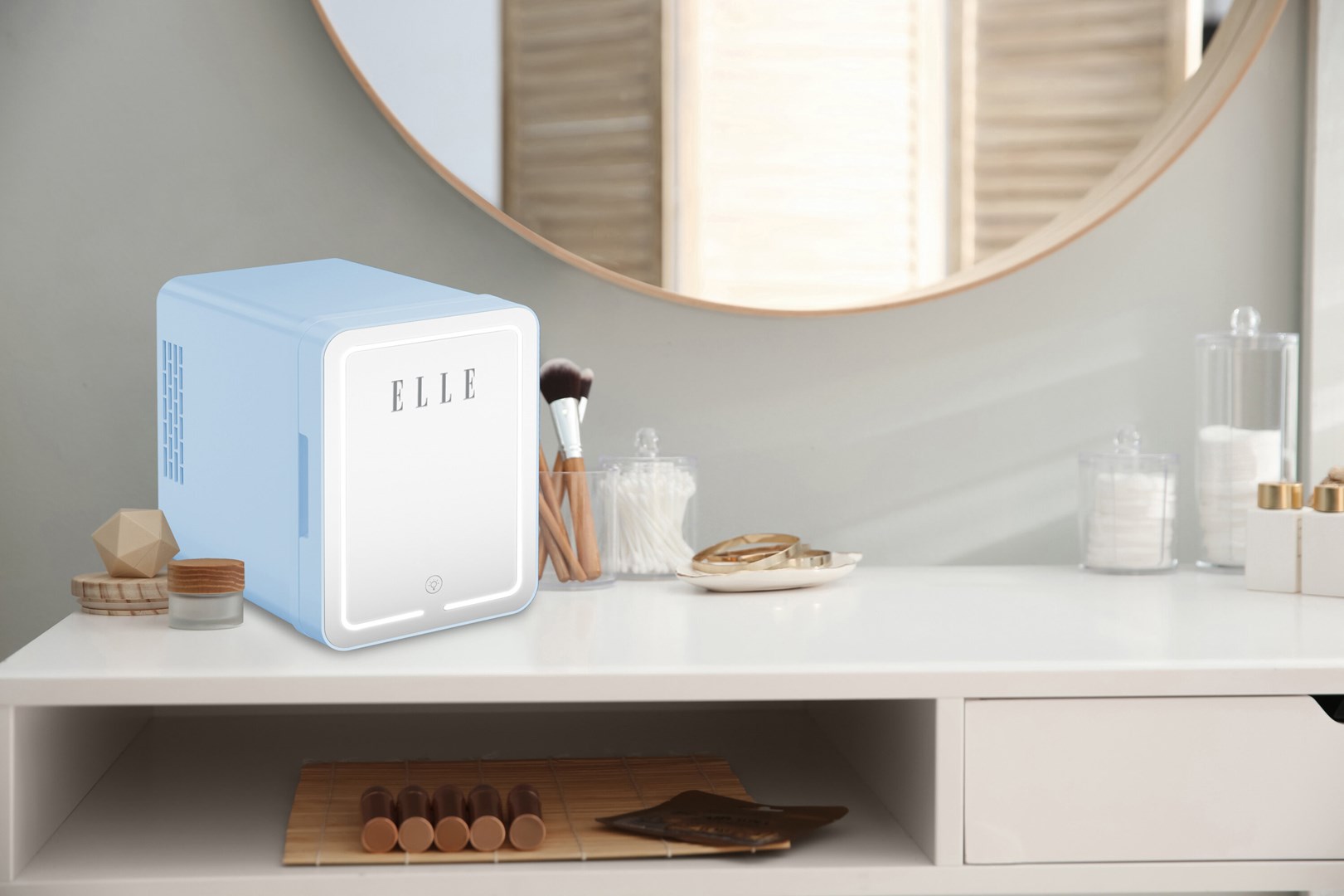Prima pagină » Magazin » Mini lodówka z lusterkiem do makijażu LED ELLE 4L niebieska