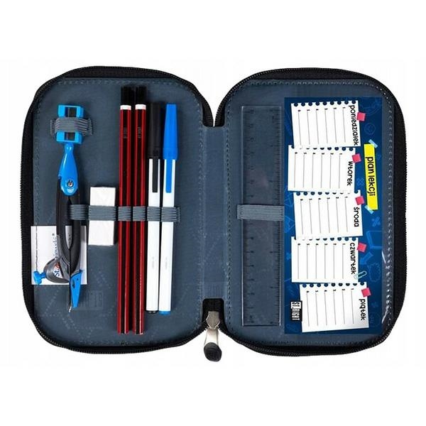 Wewnątrz piórnika znajdują się przegrody oraz liczne mocowania, które ułatwiają organizację przyborów szkolnych. Dzięki temu wszystkie najpotrzebniejsze rzeczy są zawsze pod ręką!