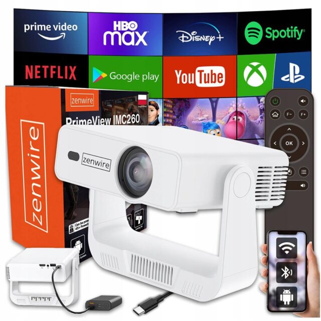 Przenośny Projektor Zenwire R1 Full HD Android Wifi Bluetooth Obrotowy