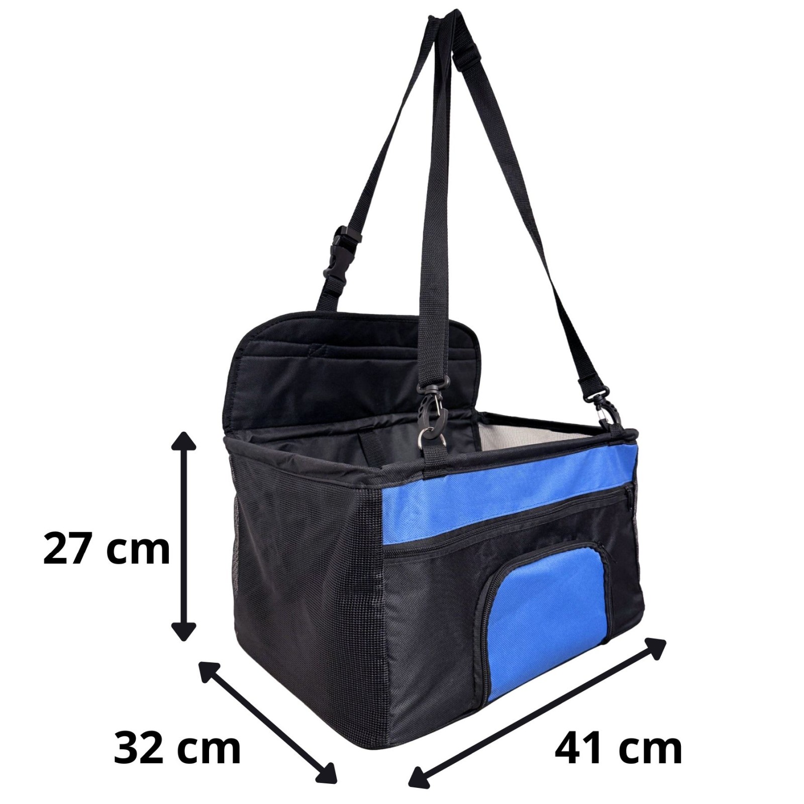 It is not only a seat, but also a temporary pet bed. The interior is spacious enough for a small dog or cat to sit or lie down comfortably. This makes the pet calmer and less stressed while driving. The car seat acts as a carrier and seat in one, giving your pet a sense of security and comfort.
