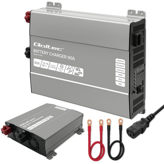 Qoltec Smart Professional Monolith Battery Charger for LiFePO4 AGM GEL SLA batteries | 90A | 12V | Fast charging